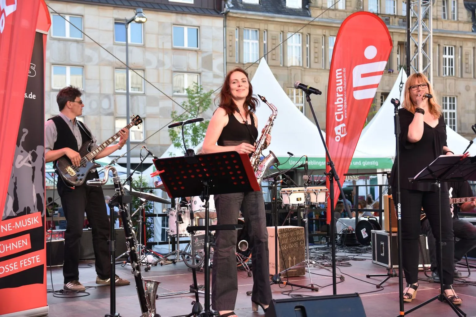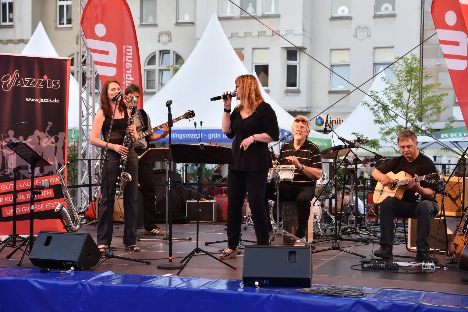 Zum Abschluss des fünftägigen Stadtfestes "Castrop kocht über" spielten die JAZZIS am 18. Juni 2017 auf dem Altstadtmarkt in Castrop-Rauxel. Auf der 360-Grad-Bühne waren beim Aufbau noch gefühlte 36 Grad, doch als die Sonne langsam hinter den Häuserzeilen verschwand, ließ sich die Gute-Laune-Musik der JAZZIS entspannt genießen. Ein schöner Ausklang dieses herrlichen Sommerabends.