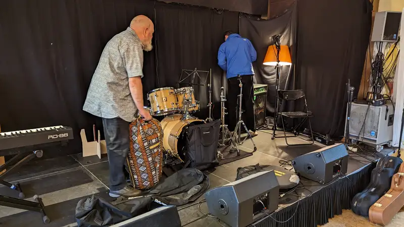 Einmal im Jahr spielen die JAZZIS im Wohnzimmer live im Piepenstock - das hat schon Tradition. So auch am 28. Oktober 2023. Und es ist wirklich wie "Nachhausekommen", wenn wir bei Kulturwirt Marco Jorge Rudolph durch die Tür treten. Die Bühne sei dieses Jahr größer, hat er uns versprochen. Doch bereits zwei Tasteninstrumente haben sich darauf breit gemacht, zwischen denen sich unser Pianist Peter Hünnemeyer aber ganz wohl fühlt. Und so beginnt das alljährliche Tetris-Spiel mit Instrumenten, derweil Marco in der Küche die Erbsensuppe wärmt und die legendären Frikadellen rollt. Es wird wieder ein wunderschöner Abend mit tollen Gästen und wir versprechen jetzt schon, in genau einem Jahr wiederzukommen: am 26. Oktober 2024. Dann werden wir in unserem Wohnzimmer das 10-jährige Jubiläum der JAZZIS feiern - merkt euch den Termin schon einmal vor!
