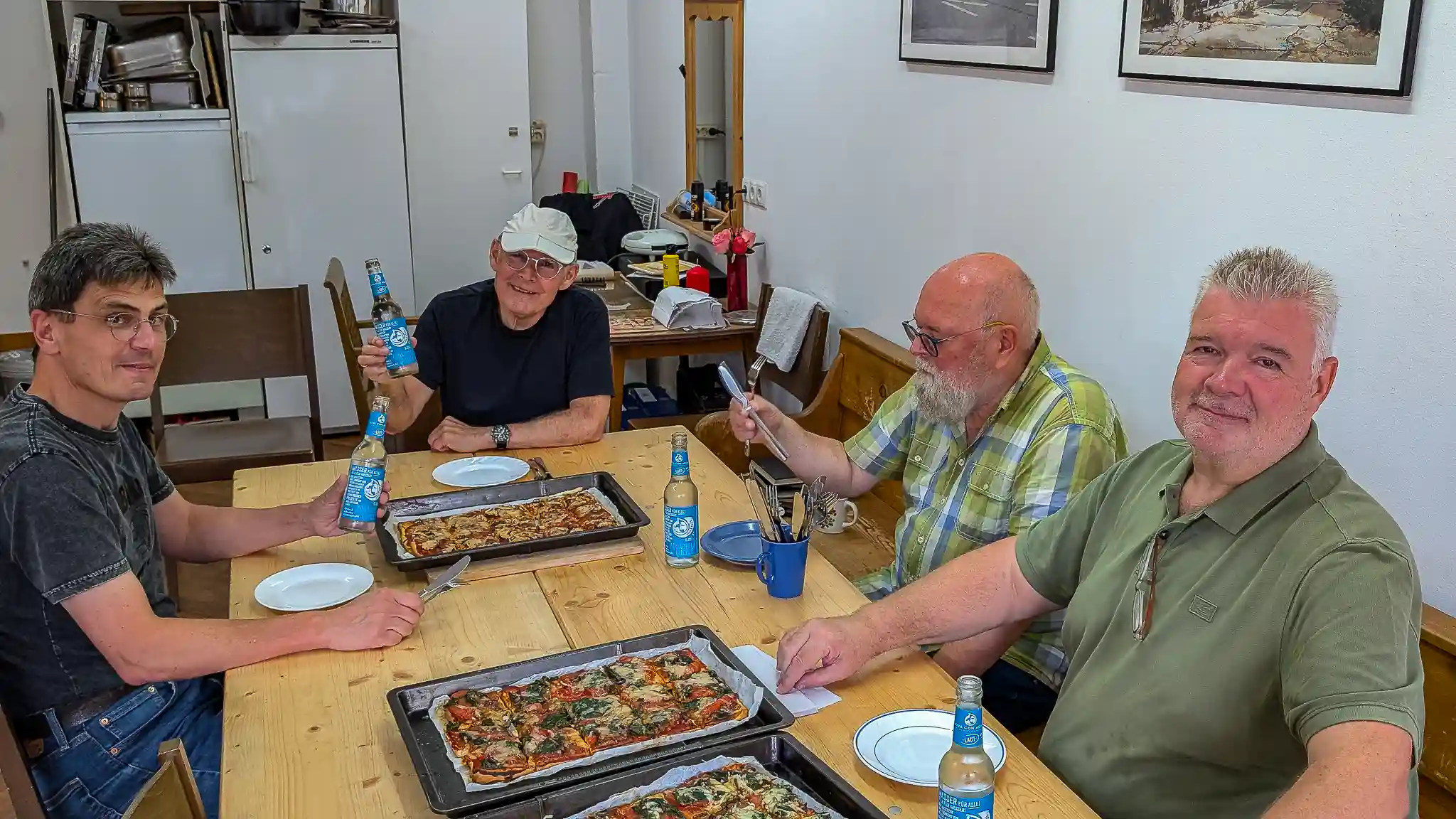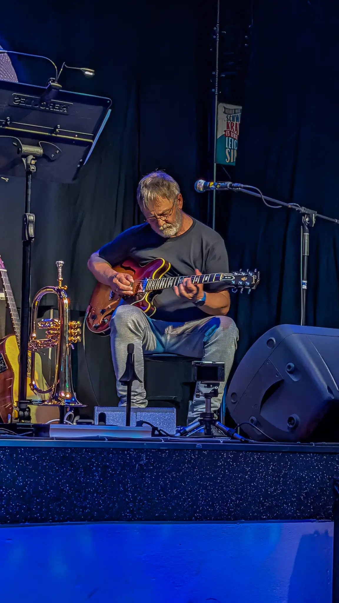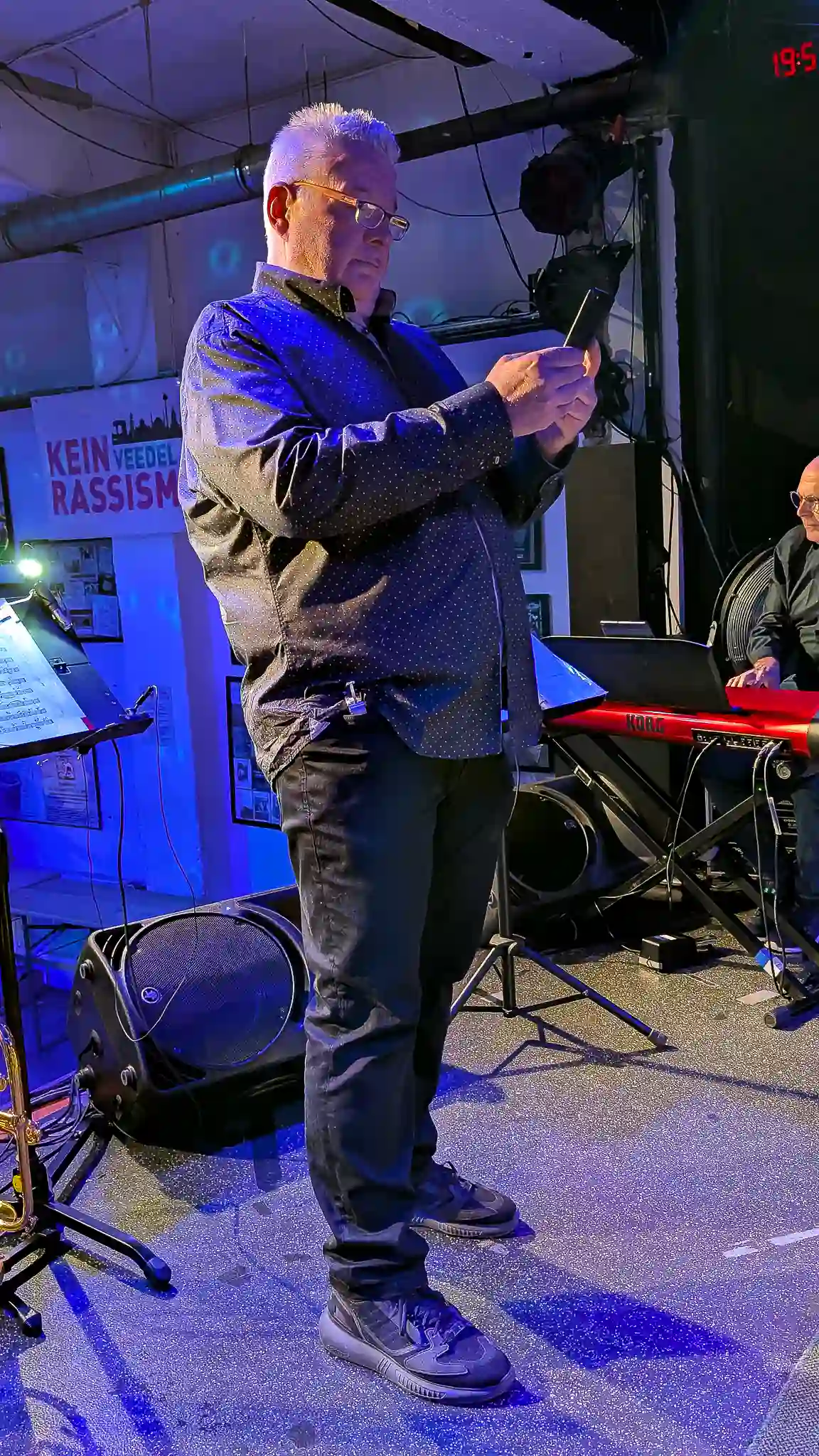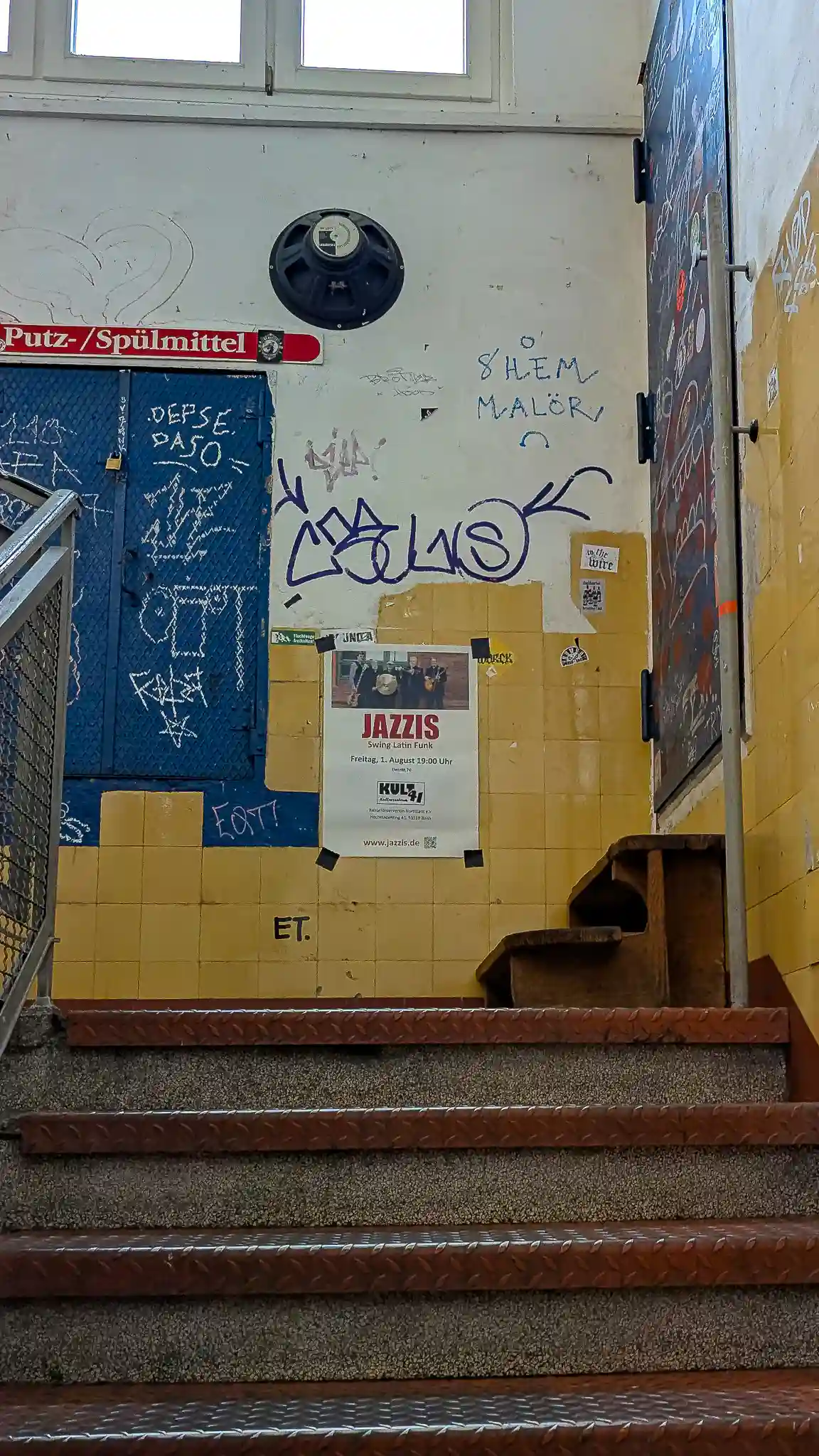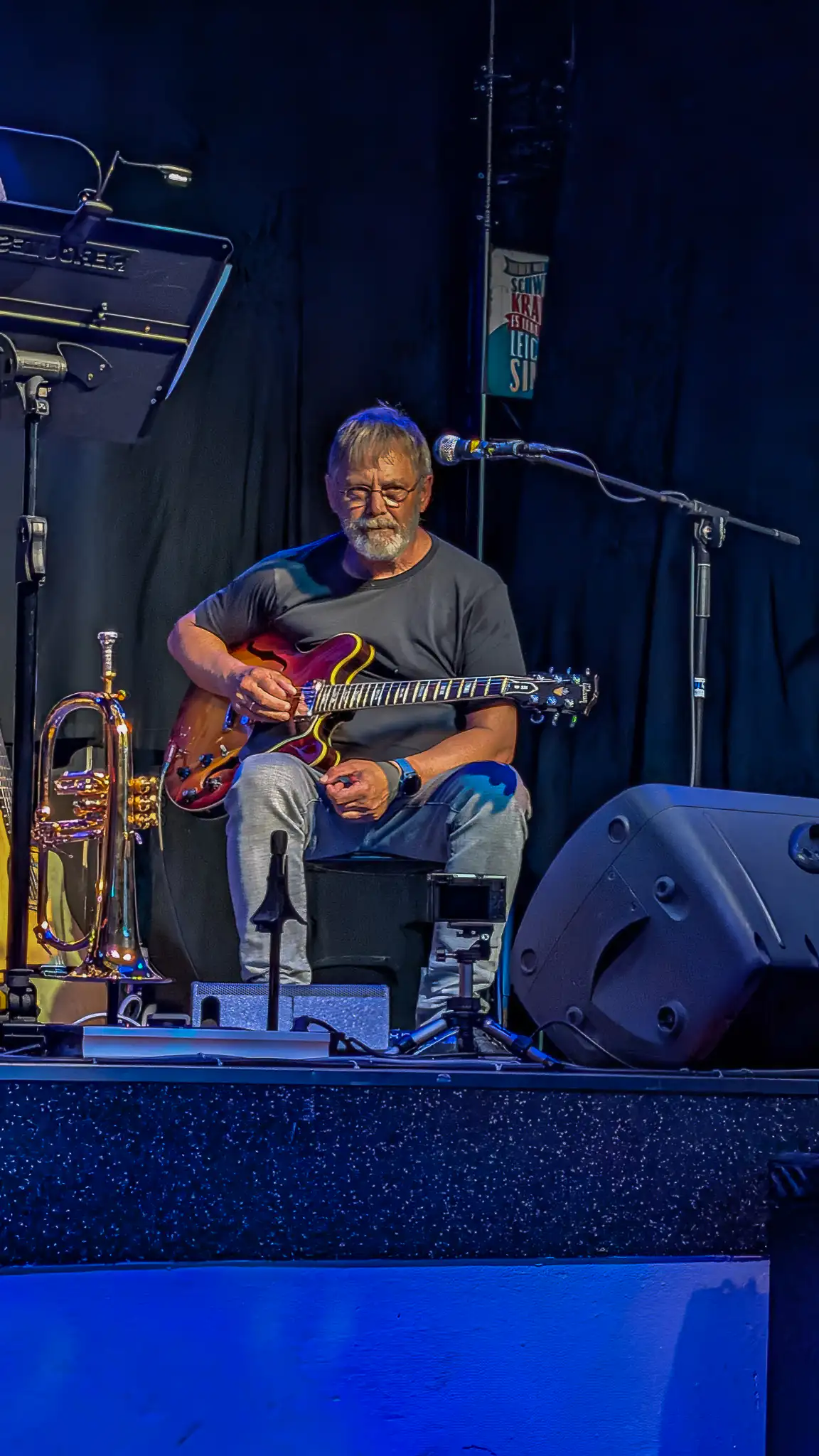 Es war eine Herausforderung, im Kult41 in Bonn zu spielen. Der Spielort mit über 200 Konzerten im Jahr(!) konzentriert sich eigentlich mehr auf Rock-, Punk- und Independent-Auftritte. Auch die Spielstätte, eine kleine Halle mit einer alten Laderampe als doch recht hoher Bühne hatte ihre akustischen Eigenheiten. Es gab einen herzlichen Empfang durch Uwe Sarter, der uns eingeladen hatte. Vor dem Konzert lud er uns erstmal Backstage zum Essen der selbstgebackenen Pizza ein. Der Soundcheck mit Wolfgang vom Kult41 hatte dann etwas Geduld abverlangt, doch beim Konzert klappte alles bestens. Das neue Programm der Band wartet neben den Swingnummern vermehrt mit erdigen Sounds aus Funk, Blues und Jazzrock auf. So legte Trompeter Rainer Matz mit Schlagzeuger Martin Christophery bei "St. Thomas" ein spektakuläres Frage-Antwortspiel hin, indem er mit seinem Mikro im "Beatbox"-Style improvisierte. Aber auch sonst gab es viele spontane Nuancen im Spiel und die den Jazzis stets eigene Spielfreude zeigte sich bei Peter Hünnemeyer in seinen virtuosen perligen Improvisationsläufen, Jörg Faust in kreativen Anschlagstechniken am Bass und Stefan Weigelt mit stets variablem Gitarrenspiel an Jazz- und Akustikgitarre wieder einmal in besonderer Weise. Der Funke sprang spätestens nach der Pause komplett über und umso schöner, dass die Jazzis die Leute zum Schluss bei den letzten vier Stücken des Konzertes sogar auf der Tanzfläche sehen konnten. Zwei Zugaben wurden noch abverlangt, bevor die ordnungsrechtliche Deadline den offiziellen Konzertabend beendete. Das Publikum und die Veranstalter konnten wir restlos begeistern und bekamen von allen Seiten positive Rückmeldungen. Eine mittelfristige Wiederholung ist fest vorgesehen. Wir bedanken uns bei Uwe für die Einladung, Wolfgang für den Sound und den netten Leuten am Einlass und an der Theke für den herzlichen Umgang und kommen natürlich gerne einmal wieder!