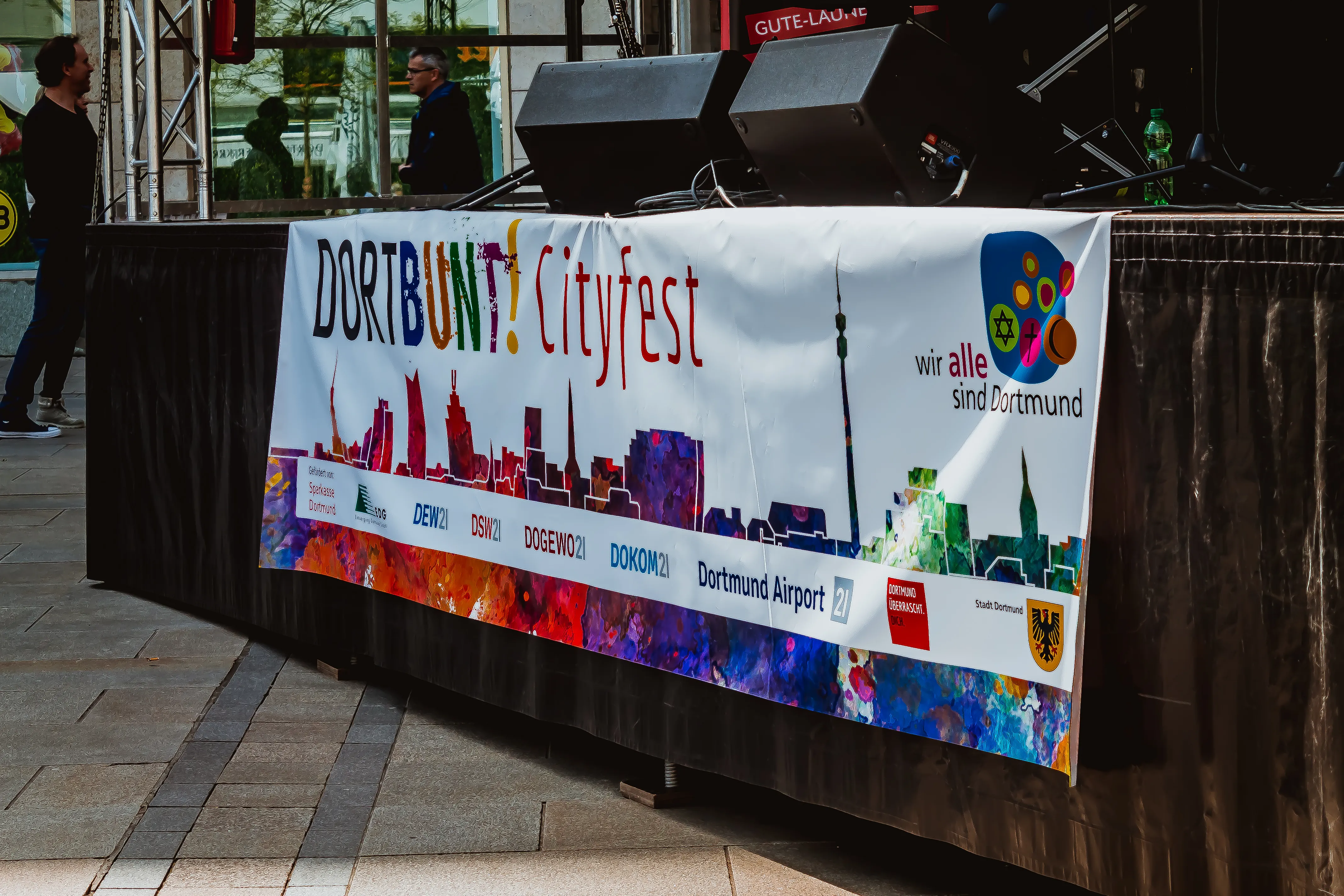 Am 6. und 7. Mai 2017 zeigte Dortmund beim Stadtfest DORTBUNT seine bunten Facetten an vielen Plätzen, Bühnen und Orten in der gesamten City. Die JAZZIS machten an beiden Tagen den Auftakt auf der großen Bühne auf dem Alten Markt. Die Veranstaltergemeinschaft Alter Markt hatte nicht nur die großartige Technik organisiert, sondern auch großzügig für unser leibliches Wohl gesorgt. Herzlichen Dank an Antonia Kuster von Lifestyle & Friends. Es hat uns großen Spaß gemacht, an diesem friedlichen und fröhlichen Fest dabei zu sein.