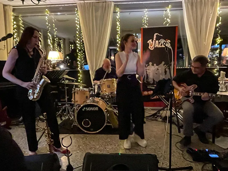 Unterschiedlicher konnten die Momente nicht sein: letzte Woche noch im großen Saal oben auf der Bühne und gestern im Cafe Alt Wien in gemütlicher, trauter Atmosphäre ganz nah beim Publikum! Es hat extrem Spaß gemacht! Wir hatten schnell den Draht zu den Gästen im voll besetzten Raum gefunden und konnten diese für unsere Musik begeistern. Es gab vom sehr konzentriert zuhörenden Publikum zahlreich Szenenapplaus und nach dem Konzert begeisterte und anerkennende Worte für uns. Danke vor allem auch an Christian, der sich - erstmals bei uns - schnell in die Technik einarbeitete und uns einen super Sound mixte. Die Jazzis werden auf jeden Fall beizeiten wiederkommen müssen - so der Wunsch von Veranstalter Michael Cadek!