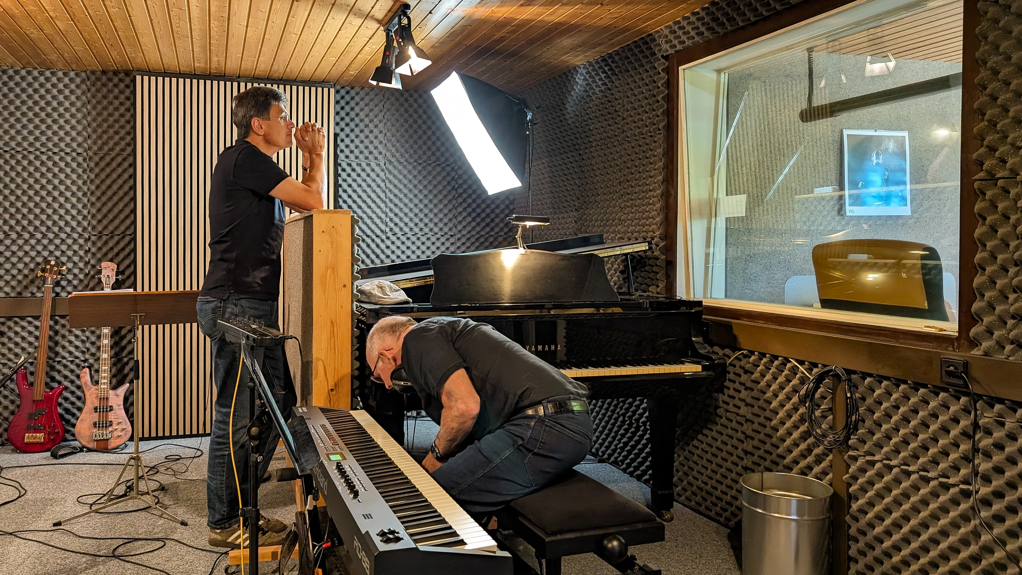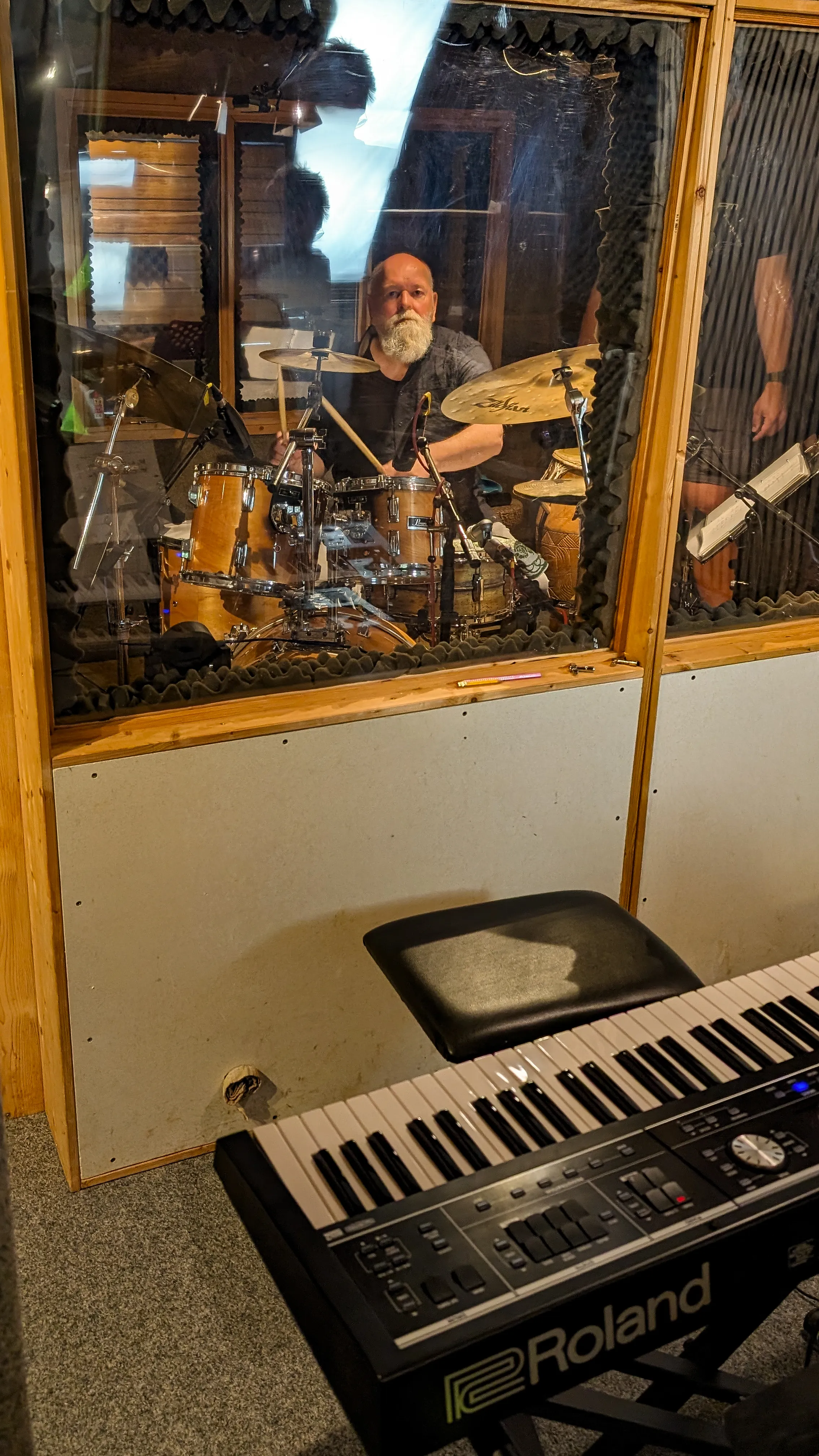 Nach über acht Stunden war es vollbracht! Stolze sechs Titel haben wir im Camarillo-Sound-Studio einspielen können und waren damit sehr produktiv. Unsere bekannt eiserne Probendisziplin kam uns da inhaltlich und konditionell sehr zugute. Danke vor allem an Marvin, der ausdauernd und die Nachtschicht vor Augen bis zuletzt die Film- und Fotokamera bedient hat (bist ein Schatz!) und natürlich an Benny Mokross, der uns sehr souverän, humorvoll und erfahren durch den Tag geführt hat. Weiteren Verdienst erwarb sich Martins Frau Monika für das gebackene Pizzablech. Wir sind natürlich gespannt, wie nachher der Mix und die Videos nach viel Nacharbeit ausfallen. Erste Hörproben klangen aber schon sehr amtlich! Zusammen mit einer neu gestalteten Homepage werden wir dann zum Herbst mit neuen und professionellen Ton- und Videoaufnahmen einen weiteren Schritt nach vorn machen.