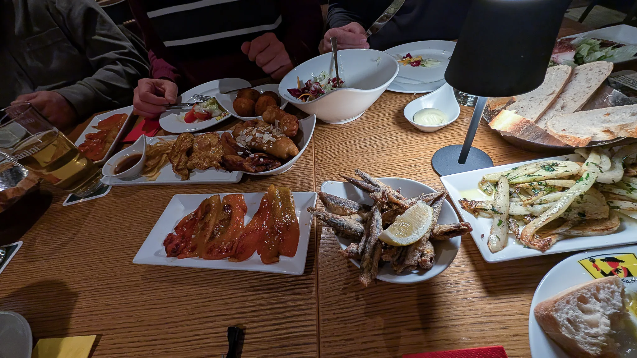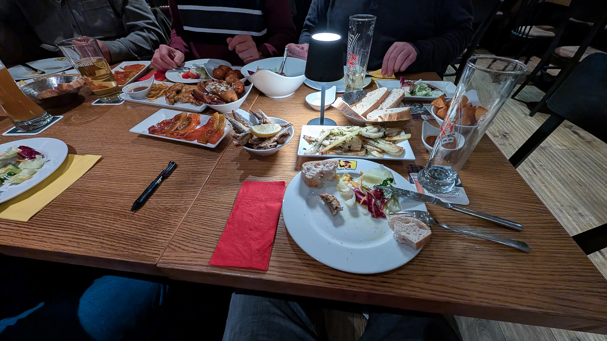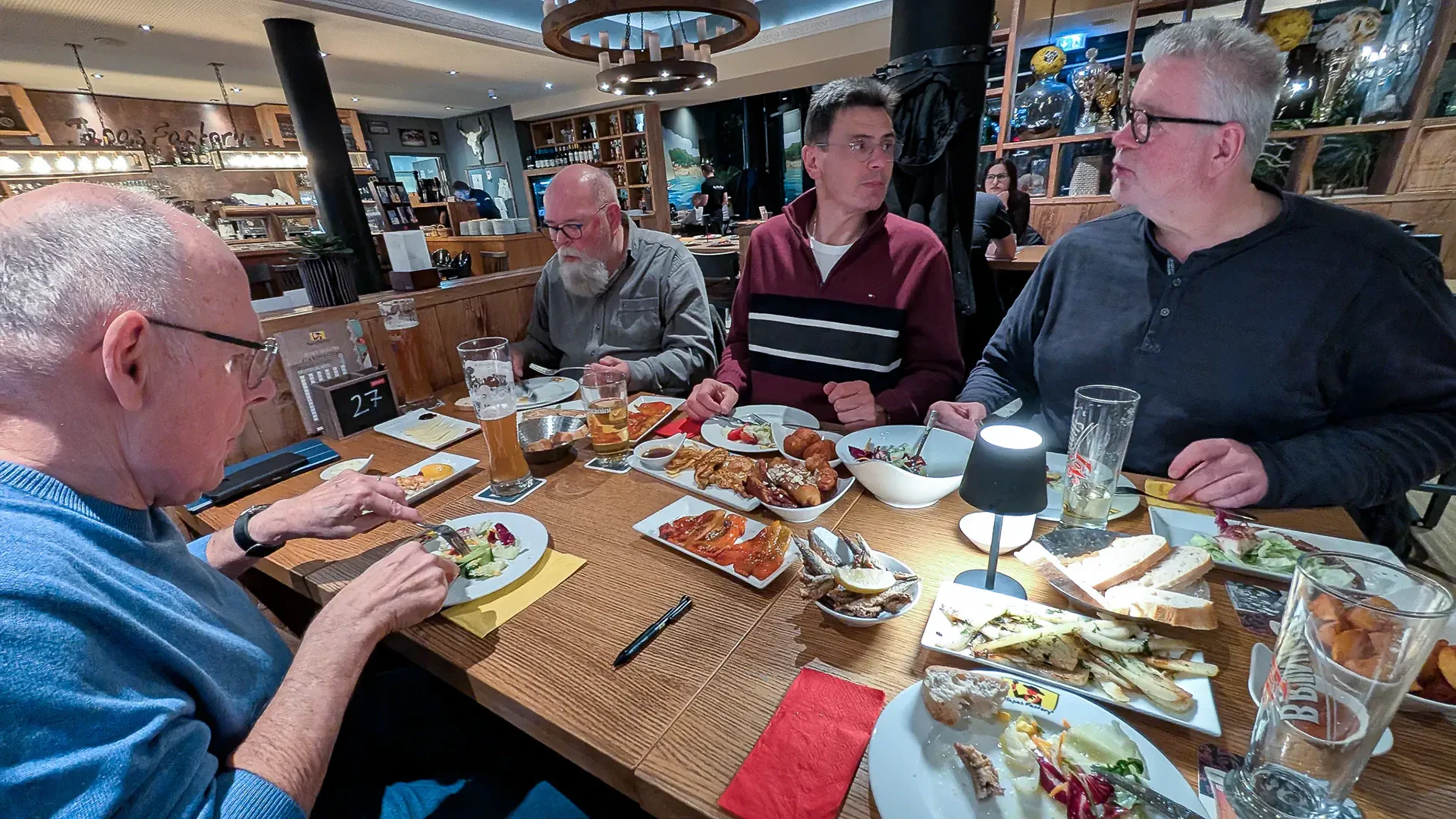 Die vorletzte Probe dies Jahr verbrachten wir im Tapas-Restaurant. Neben sehr leckerem Essen war Besprechung angesagt, Themen waren u. a. die letzten Auftritte, etwas "Marketing" und wie es musikalisch weitergehen soll. Alle waren sich nicht nur aufgrund des famosen Auftritts letzte Woche bei Aktionen - Stiftung für Menschen in Not einig, dass es sehr ein erfolgreiches Jahr nach der großen Umbesetzung war. Es gibt ferner ab sofort auch eine neue Homepage. Defizitär sind allerdings nach wie vor unsere Promotionvideos, hier haben wir qualitativ noch nicht nachlegen können, da auch wenig Möglichkeiten bestanden, live professionell zu filmen. Daran müssen wir arbeiten!