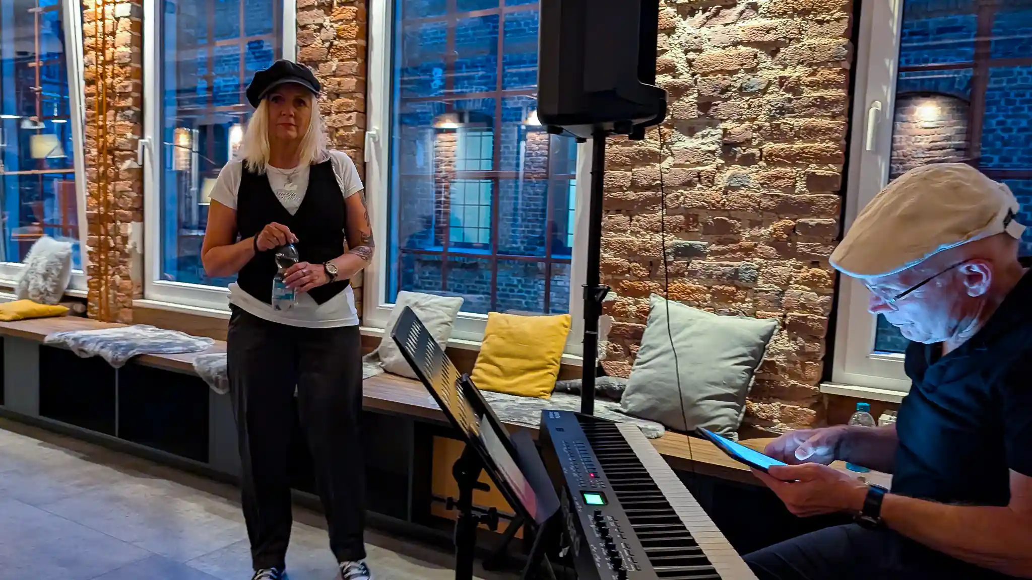 Vorweg ein Kompliment an die Location: die alte Fabrik ist ein charismatisches Areal mit dem schönen Innenhof und modern und stilvoll renovierten Räumen. Unter anderem ist hier das Unternehmen Qwörk Iserlohn zuhause, das auch das Event stark unterstützte. Bei der "Wechselschicht" in der Iserlohner Fabrik spielten in vier Räumlichkeiten abwechselnd je zwei Bands. Das Konzept kam bei den zahlreich erschienenen Besuchern offenbar sehr gut an. Sehr gut auch die Betreuung der Bands, im Backstagebereich war ein tolles Buffet aufgebaut, an dem sich die Bands stärkten, kennenlernten und austauschten. Das Trio Susan Kent (vocals), Peter Hünnemeyer (piano) und Stefan Weigelt (guitar) konnte unter dem Programmtitel "Susan Kent meets Jazzis" bei der Premiere voll überzeugen und erhielt nach den zwei Auftritten zahlreich Zuspruch durch Szenenapplaus und in Gesprächen. Präsentiert wurden Swingklassiker und Latinsounds, bei denen Susan mit ihrer markanten Stimme, Peter mit perligen Pianoimprovisationen und Stefan mit farbigen Harmonisierungen überzeugen konnten. Dass man die Lauscherschaft auch mit kleiner Besetzung zum Tanzen animieren kann, zeigte u. a. das funky arrangierte "Summertime". Auch die IKZ war voll des Lobes. Wir danken Brigitte Felician Siebrecht und Ralf, aber auch den anderen im Orgateam für die Einladung und nette Unterstützung. Gerne kommen wir wieder, das nächste mal gerne auch in voller Besetzung!