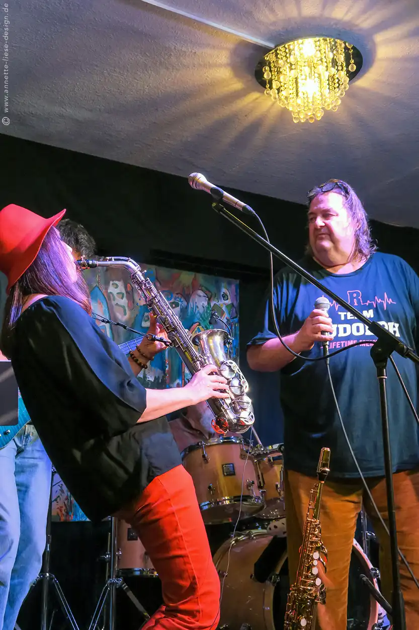 Auch 2022 waren die JAZZIS wieder zu Gast bei Marco Jorge Rudolph im Wohnzimmer live im Piepenstock in Dortmund-Hörde. Es ist jedes Mal eine große Freude, in dieser urigen Kneipe vor dem wunderbaren Publikum zu spielen, das uns den Hut reichlich gefüllt hat. Wie es schon Tradition ist, sang auch dieses Mal Kulturwirt Marco bei einem unserer Stücke mit und brachte mit "Summertime" die Bühne zum Beben. Die schöne Stimmung hat unsere Lieblingsfotografin Annette Liese eingefangen.