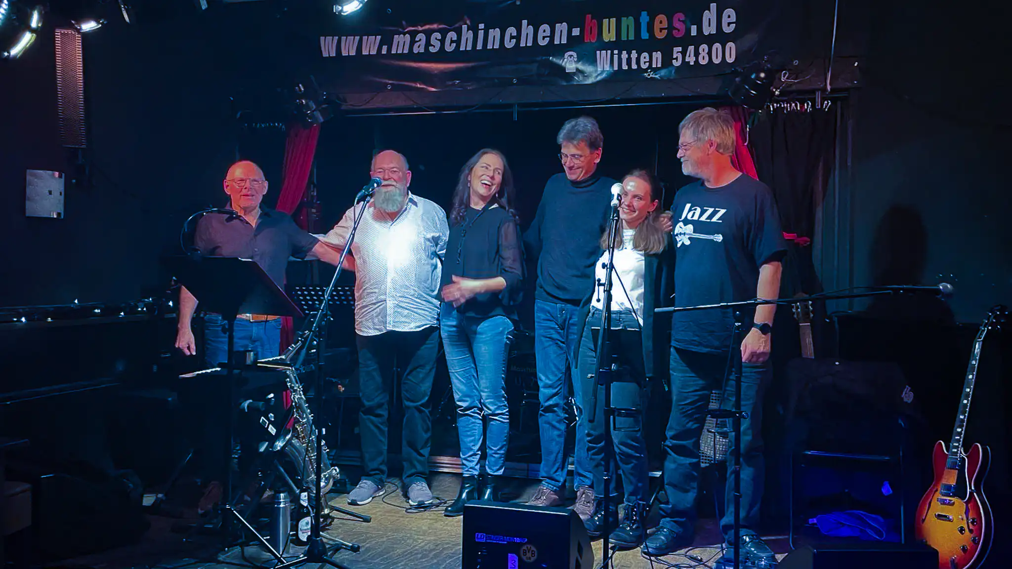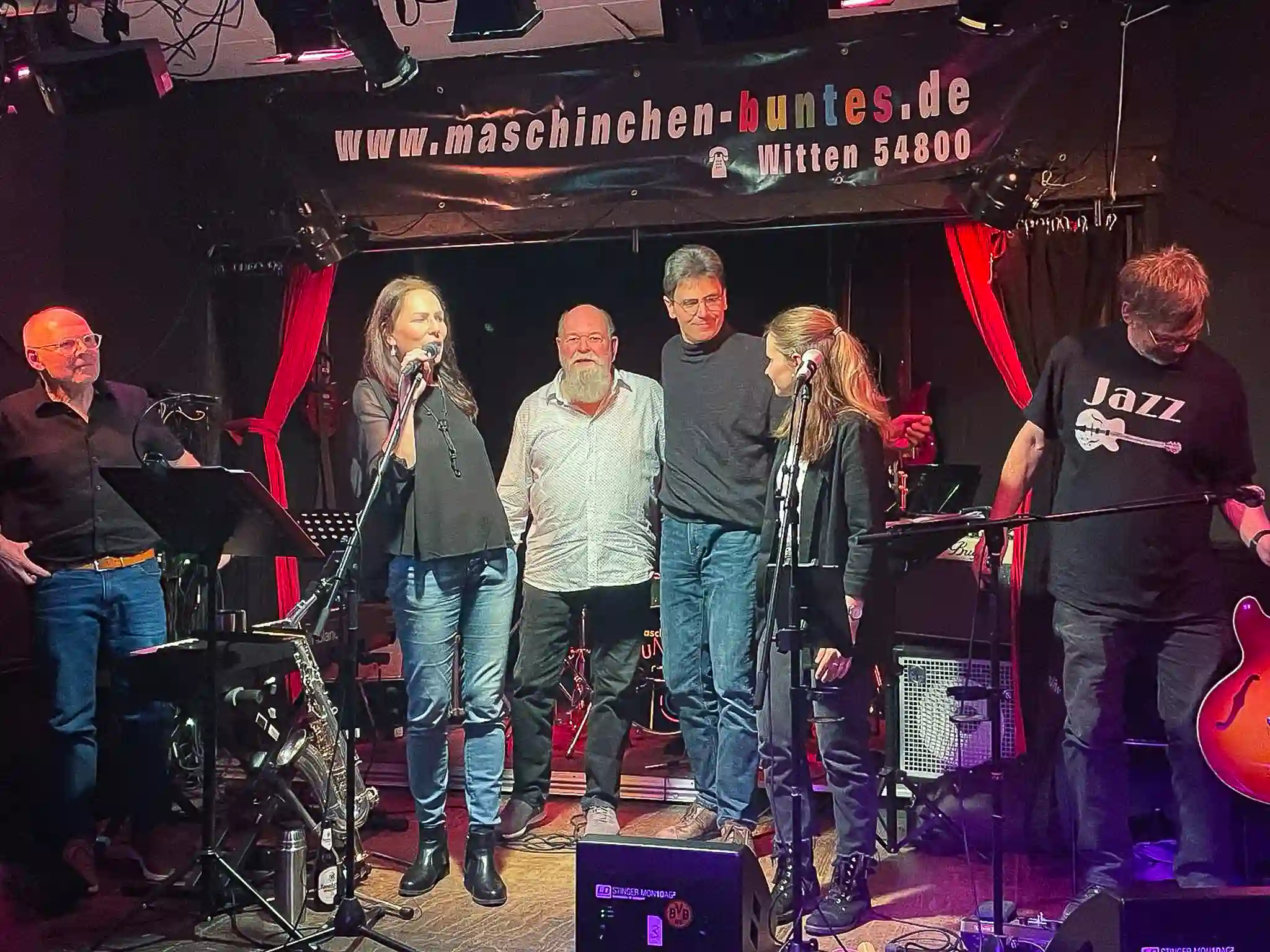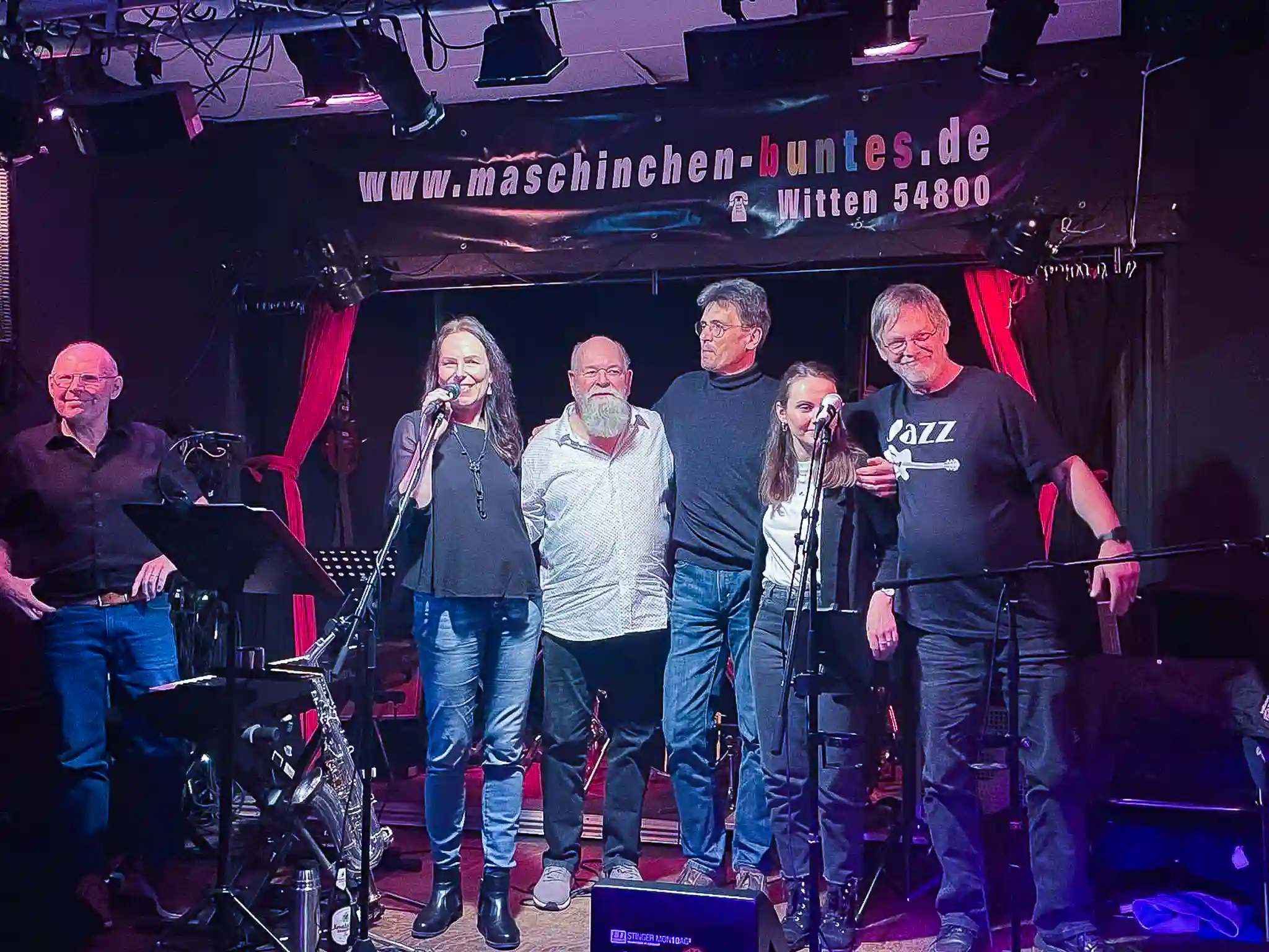 Auch 2024 haben wir unsere Konzertsaison im Maschinchen Buntes in Witten gestartet. Wie alte Freunde sind wir dort von einem begeisterten Publikum aufgenommen worden. Gerald Caspers hat uns nicht nur entspannt und professionell abgemischt, sondern uns auch einen super angenehmen Bühnensound gezaubert. Nach längerer Spielpause hat uns dieser energiegeladene Auftritt richtig gut getan. Jetzt freuen wir uns darauf, mit vielen neuen Stücken durchzustarten, denn 2024 wird ein ganz besonderes Jahr für uns: Wir feiern 10 Jahre JAZZIS mit unserem Jahresmotto "Thank you for the music". Ihr dürft gespannt sein.