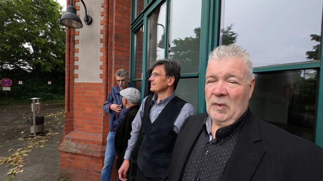 Die location, die uns Annette Liese gezeigt hatte, nutzten wir gerne wieder, um neue Bandfotos zu machen. Hans Dreischmeier hatte uns bereits letztes Jahr in der Altststadtschmiede beim Konzert live hervorragend in Szene gesetzt und war sofort bereit, mit uns zu arbeiten. Danke, Hans! Immer wieder blickten wir gespannt auf das Wetter, zwischen Sonne und Wolkenbruch war alles dabei! Aber es gab Unterstellm glichkeiten!