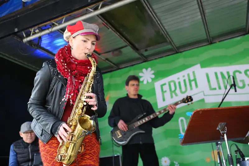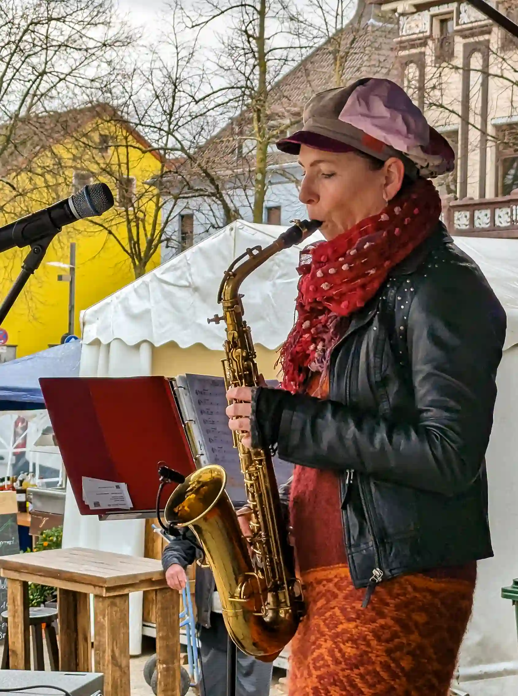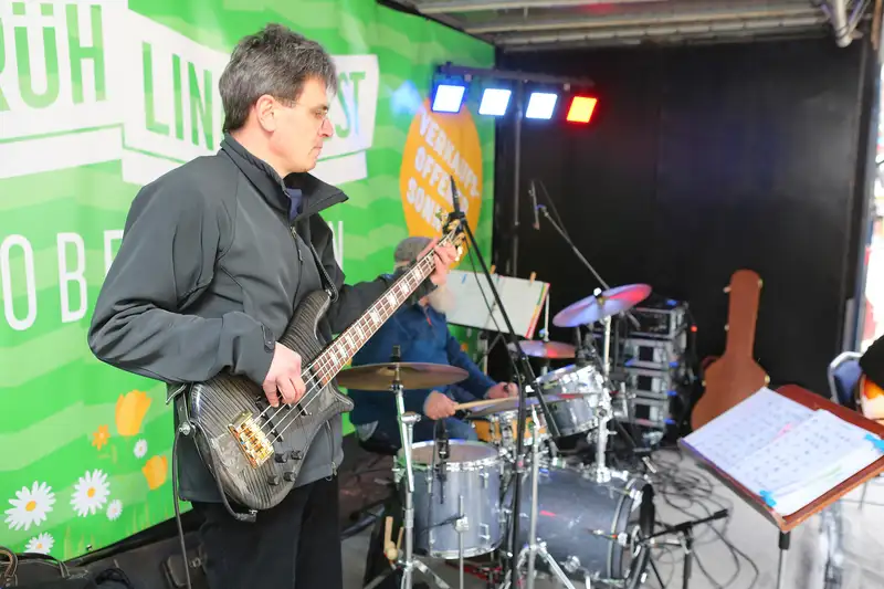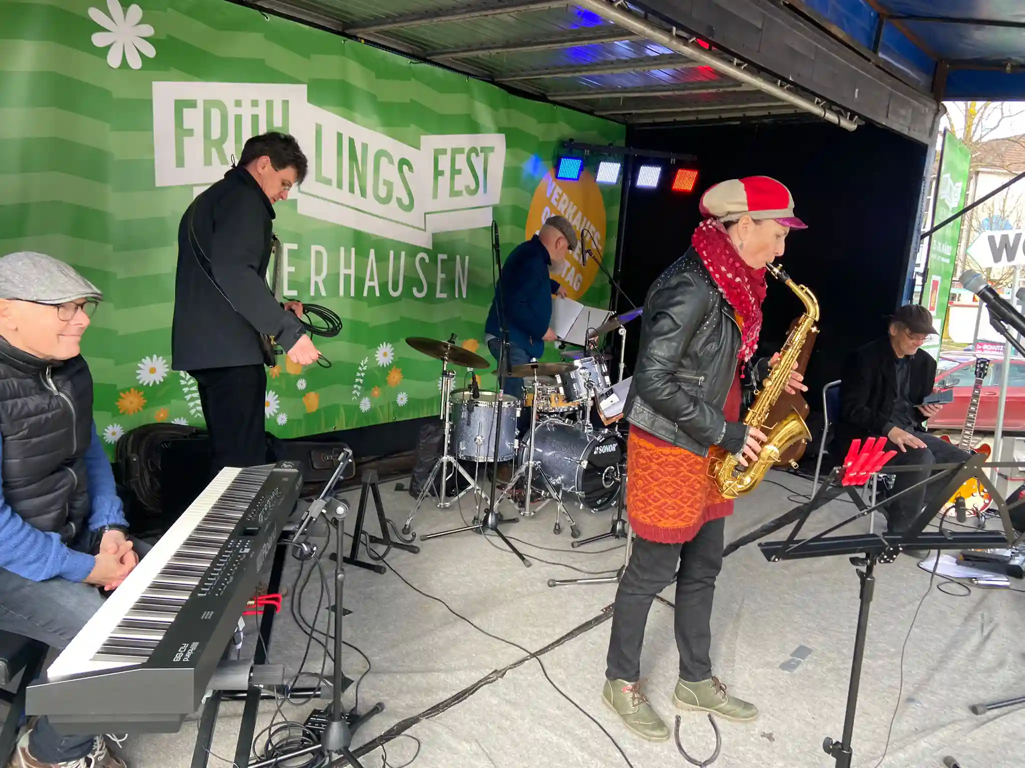 Beim Frühlingsfest auf dem Altmarkt Oberhausen wurden wir und die wenigen Zuschauer förmlich weggeweht. Regen, Regen, Regen und stürmischer Wind sowie ungewohnte Kälte machten den JAZZIS das Musizieren und dem Publikum das Ausharren schwer. Aber so ist das Open-Air nun mal! Danke an Basti Swillims von CONTACT für das Engagement und Thomas von PublixSound für den guten Sound!